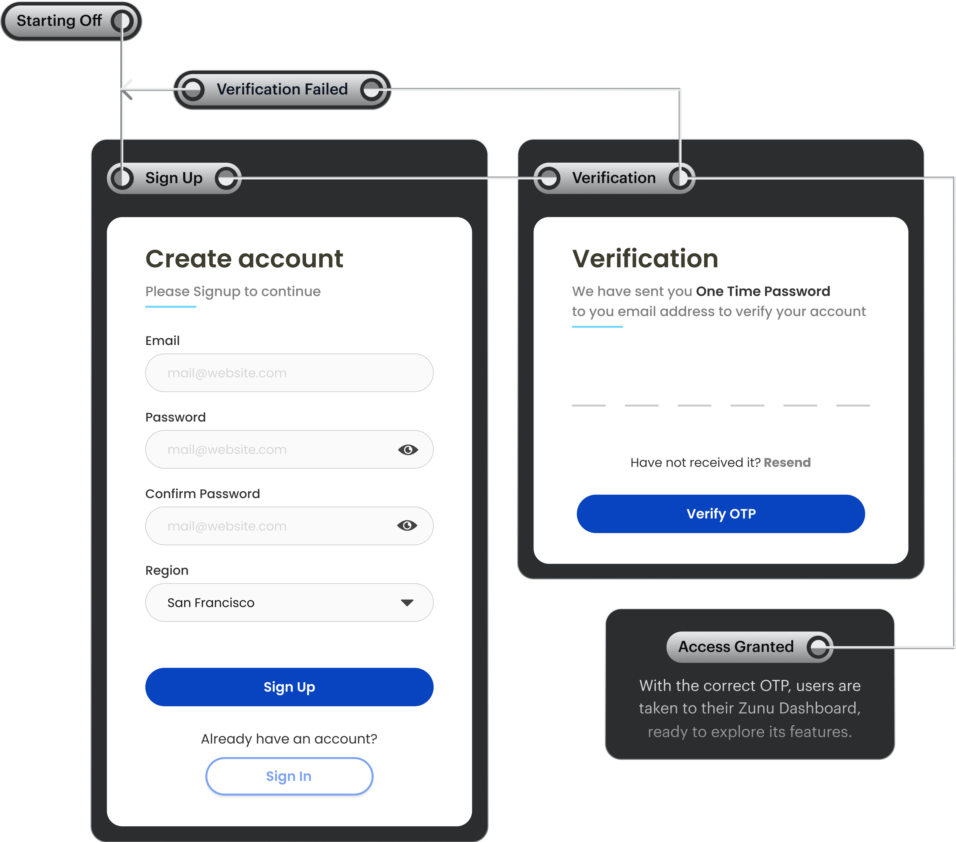 The user flow for signing up to Zunu Drive is a streamlined process designed for simplicity and ease, ensuring a user-friendly experience from the start. Here's how it unfolds: